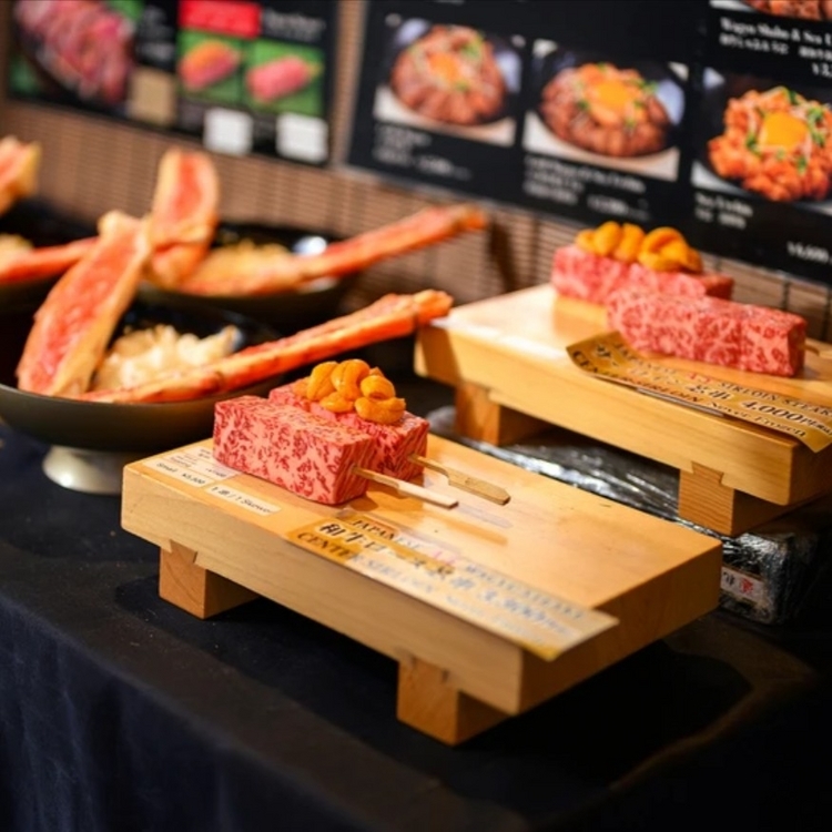 お肉×雲丹は外国人ウケ間違いなし! 和牛はとてもやわらかく、噛み締めるほどに旨みが広がります。雲丹も新鮮で、和牛との相性も抜群。味付けはシンプルなので、肉・雲丹それぞれの素材自体の味を楽しめます。わさびや塩で味変も可能です。