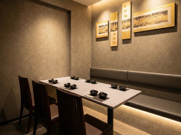 プライベートが守られる半個室。大切なビジネスの接待や、記念日の会食にも相応しい上質な空間です